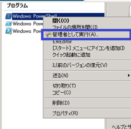 スタートメニューでPowerShellを検索し、右クリック、「管理者として実行」で起動します。