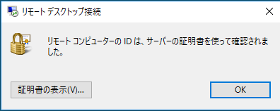 リモートデスクトップで接続する際に、下記の警告に遭遇することがよくあります。